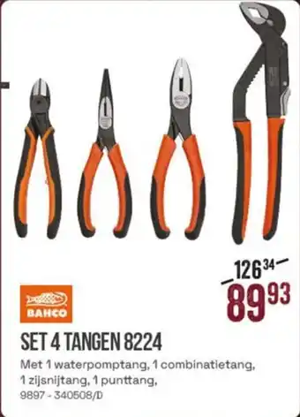 Verwachte Bahco Set 4 Tangen 8224 aanbieding bij Meno