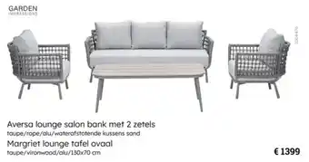Aversa lounge salon bank met 2 zetels + Margriet lounge tafel ovaal promo en online acties bij Multi bazar