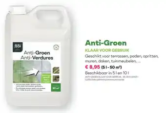 Deze promotie is bij diverse winkels in de aanbieding, bekijk alle producten om te zien welke BSi Anti Groen het goedkoopst is.Als u wilt weten of dit product meer korting heeft in een andere winkel kan u vergelijken onder de categorie 'Discount'. Wellicht vindt u deze aanbiedingen ook interessant: BSi Anti-Groene aanslag, Anti-groen 5L & BSi EasyWeed.
