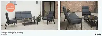 Deze promotie is bij diverse winkels in de aanbieding, bekijk alle producten om te zien welke Campo Loungeset het goedkoopst is.Als u wilt weten of dit product meer korting heeft in een andere winkel kan u vergelijken onder de categorie 'Discount'. Wellicht vindt u deze aanbiedingen ook interessant: Campo 4-delige loungeset, Stoel Campo & Preston loungeset.
