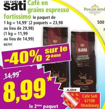 Verwachte Les cafés sati cafe en grains espresso fortissimo aanbieding bij Norma