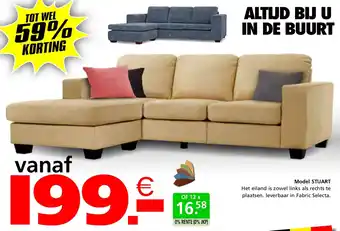Seats and Sofas heeft een ruim assortiment naast de Model Stuart, houd elke week de Seats and Sofas folder in de gaten om de beste aanbiedingen en promoties te vinden. Naast Model Stuart in promotie kan u ook volgende aanbiedingen vinden: Model Bellagio, Model Creation & Model Opal.