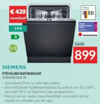 Verwachte Siemens Inbouwvaatwasser SISN63EX22CE aanbieding bij Selexion