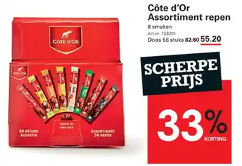Sligro heeft een ruim assortiment naast de Côte d'Or Assortiment repen, houd elke week de Sligro folder in de gaten om de beste aanbiedingen en promoties te vinden. Naast Côte d'Or Assortiment repen in promotie kan u ook volgende aanbiedingen vinden: Côte d'Or repen single assortiment, Côte d'Or & Côte d'Or.