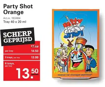 De prijs van Party shot orange kan u vinden bovenaan de pagina, waarbij ook de geldigheidsdata worden genoemd. Daarnaast is de prijs ook te vinden in de huidige Sligro folder of op de website van Sligro. U bent verzekerd van producten aan de laagste prijs bij Sligro als u artikelen in promotie koopt.