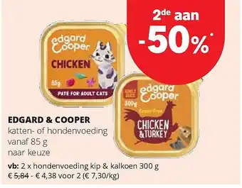 Spar heeft een ruim assortiment naast de EDGARD & COOPER hondenvoeding kip & kalkoen 300 g, houd elke week de Spar folder in de gaten om de beste aanbiedingen en promoties te vinden. Naast EDGARD & COOPER hondenvoeding kip & kalkoen 300 g in promotie kan u ook volgende aanbiedingen vinden: Edgard & Cooper natvoer kat 85 g, edgard Cooper natvoer hond & Kalkoen- (125 g) of kipfilet (150 g).