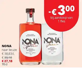 Deze promotie is bij diverse winkels in de aanbieding, bekijk alle producten om te zien welke NONA naar keuze het goedkoopst is.Als u wilt weten of dit product meer korting heeft in een andere winkel kan u vergelijken onder de categorie 'Supermarkt'. Wellicht vindt u deze aanbiedingen ook interessant: Nona, Aperitief 0,0% Nona & Spritz & Tonic 0.0% Nona.