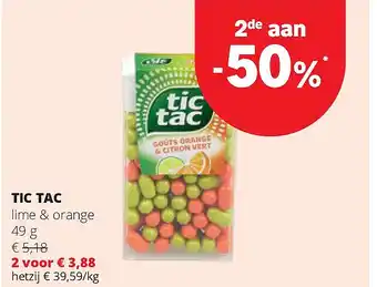 Deze promotie is bij diverse winkels in de aanbieding, bekijk alle producten om te zien welke TIC TAC lime & orange 49 g het goedkoopst is.Als u wilt weten of dit product meer korting heeft in een andere winkel kan u vergelijken onder de categorie 'Supermarkt'. Wellicht vindt u deze aanbiedingen ook interessant: Tic tac lime & orange, Tic Tac Strawberry Lime 38,5 g & Tic Tac sinaasappel- en limoensmaak 49 g.
