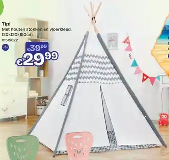 ToyChamp heeft een ruim assortiment naast de Tipi, houd elke week de ToyChamp folder in de gaten om de beste aanbiedingen en promoties te vinden. Naast Tipi in promotie kan u ook volgende aanbiedingen vinden: Tipi Met houten stokken en vloerkleed. 120x120x150cm, Speelhut tipi & Hut tipi.