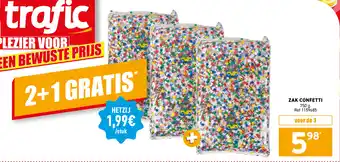 De prijs van Zak confetti kan u vinden bovenaan de pagina, waarbij ook de geldigheidsdata worden genoemd. Daarnaast is de prijs ook te vinden in de huidige Trafic folder of op de website van Trafic. U bent verzekerd van producten aan de laagste prijs bij Trafic als u artikelen in promotie koopt.