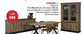 Deze promotie is bij diverse winkels in de aanbieding, bekijk alle producten om te zien welke Etienne Eetkamer het goedkoopst is.Als u wilt weten of dit product meer korting heeft in een andere winkel kan u vergelijken onder de categorie 'Wonen'. Wellicht vindt u deze aanbiedingen ook interessant: Eetkamer, ETIENNE & Etienne vitrinekast.