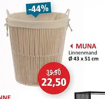Deze promotie is bij diverse winkels in de aanbieding, bekijk alle producten om te zien welke MUNA het goedkoopst is.Als u wilt weten of dit product meer korting heeft in een andere winkel kan u vergelijken onder de categorie 'Wonen'. Wellicht vindt u deze aanbiedingen ook interessant: Muna linnenmand, aanbieding 2 & aanbieding 3.