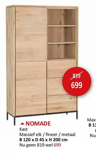 Deze promotie is bij diverse winkels in de aanbieding, bekijk alle producten om te zien welke NOMADE het goedkoopst is.Als u wilt weten of dit product meer korting heeft in een andere winkel kan u vergelijken onder de categorie 'Wonen'. Wellicht vindt u deze aanbiedingen ook interessant: Nomade Kast, aanbieding 2 & aanbieding 3.