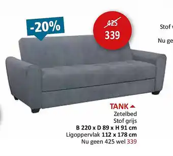 Deze promotie is bij diverse winkels in de aanbieding, bekijk alle producten om te zien welke TANK het goedkoopst is.Als u wilt weten of dit product meer korting heeft in een andere winkel kan u vergelijken onder de categorie 'Wonen'. Wellicht vindt u deze aanbiedingen ook interessant: TANK Zetelbed Stof grijs, Smart Tank 6005 & HP Smart Tank 6005.