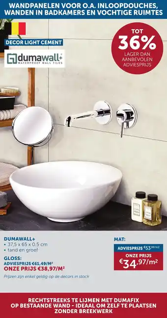 Deze promotie is bij diverse winkels in de aanbieding, bekijk alle producten om te zien welke Dumawall+ het goedkoopst is.Als u wilt weten of dit product meer korting heeft in een andere winkel kan u vergelijken onder de categorie 'Bouwen en verbouwen'. Wellicht vindt u deze aanbiedingen ook interessant: Wandtegels "dumawall+", Wandtegels Dumawall+ & Dumawall xxl.