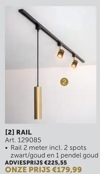 Rail 2 meter incl. 2 spots zwart/goud en 1 pendel goud