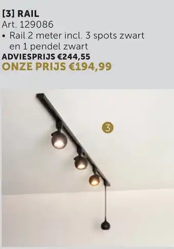 • Rail 2 meter incl. 3 spots zwart en 1 pendel zwart