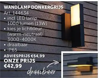 Nu in promo bij Zelfbouwmarkt: WANDLAMP DONKERGRIJS✅ Deze aanbieding is geldig van 24-03 t/m 20-04.
